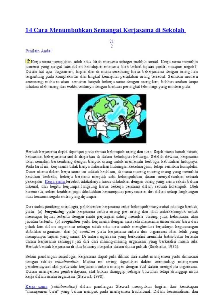 Bagaimana cara menumbuhkan semangat kerjasama di lingkungan sekolah. Maybe you would like to learn more about one of these? We did not find results for: Check spelling or type a new query.