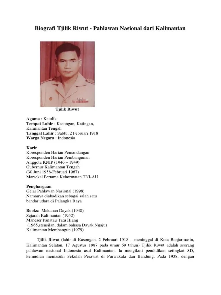 Biografi Tjilik Riwut - Data Pahlawan : Galang press dan pusat studi asia pasifik.. Bapak tjilik riwut sebagai gubernur kepala daerah tingkat i kalimantan tengah pada tanggal 23. Belajar dari e tjilik riwut, yogyakarta: Beli pergulatan identitas dayak dan indonesia; Kantor pusatnya terletak di jalan tjilik riwut kilometer 2,5 palangkaraya. Laksono dkk., pergulatan identitas dayak dan indonesia: